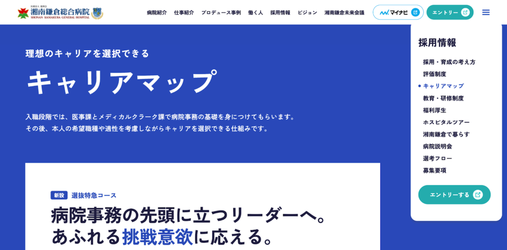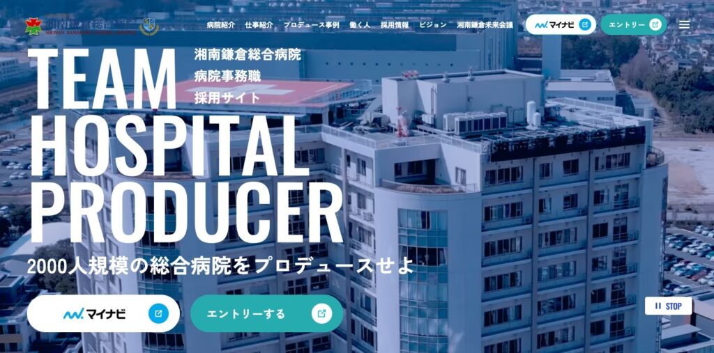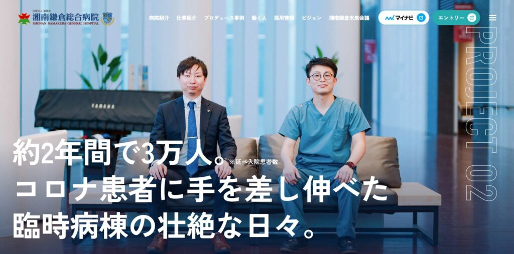 医療法人 徳洲会 湘南鎌倉総合病院 病院事務職 採用サイト|病院の壮大さと、病院事務職の可能性を打ち出したサイト