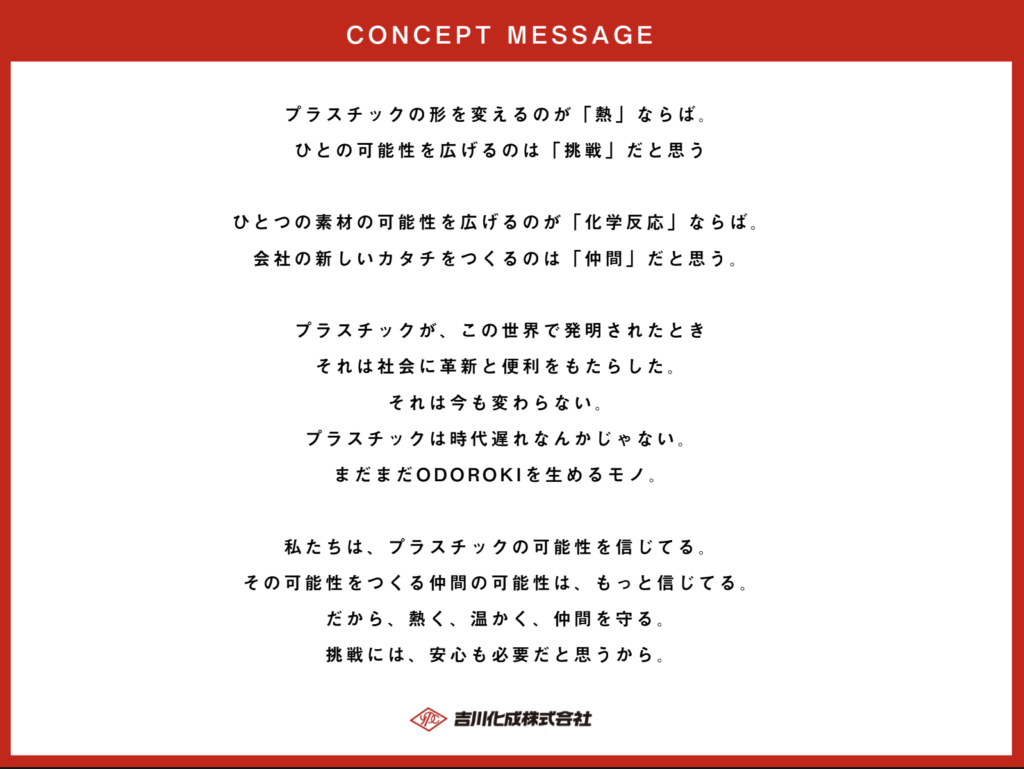 こうした吉川化成の本来の良さを活かしながら新たにコンセプトをまとめる、ということも忘れないよう意識していました。