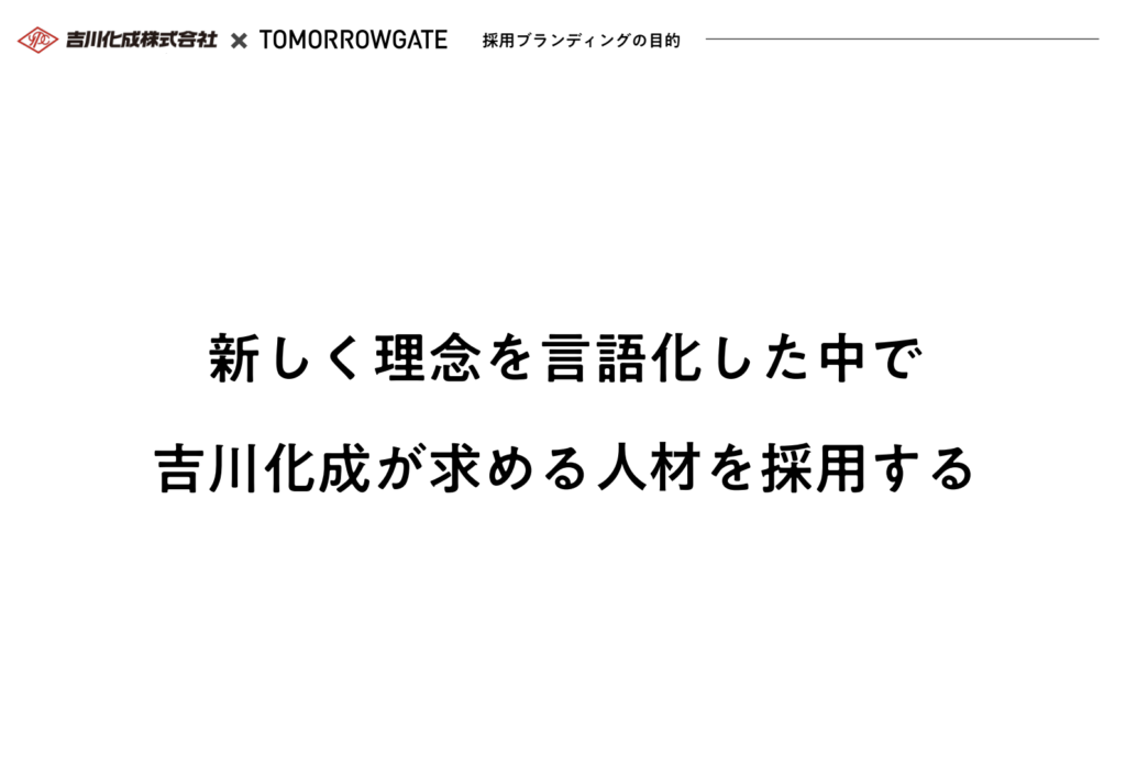 そのため、今回の採用ブランディングの重要な目的は「新しく言語化した理念に共感し、吉川化成が求める人材を採用すること」。