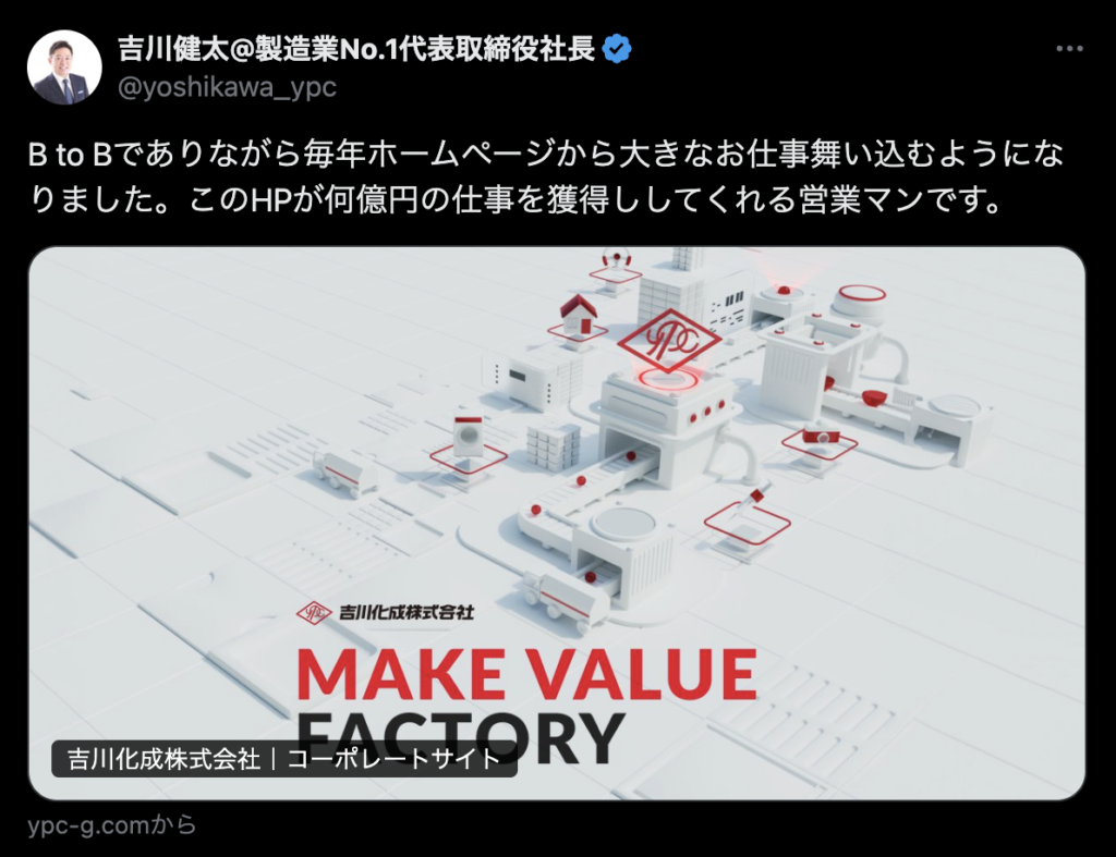 「商談につなげる」という点でも課題をクリアし、吉川社長のXでも嬉しいお言葉をいただくことができました。