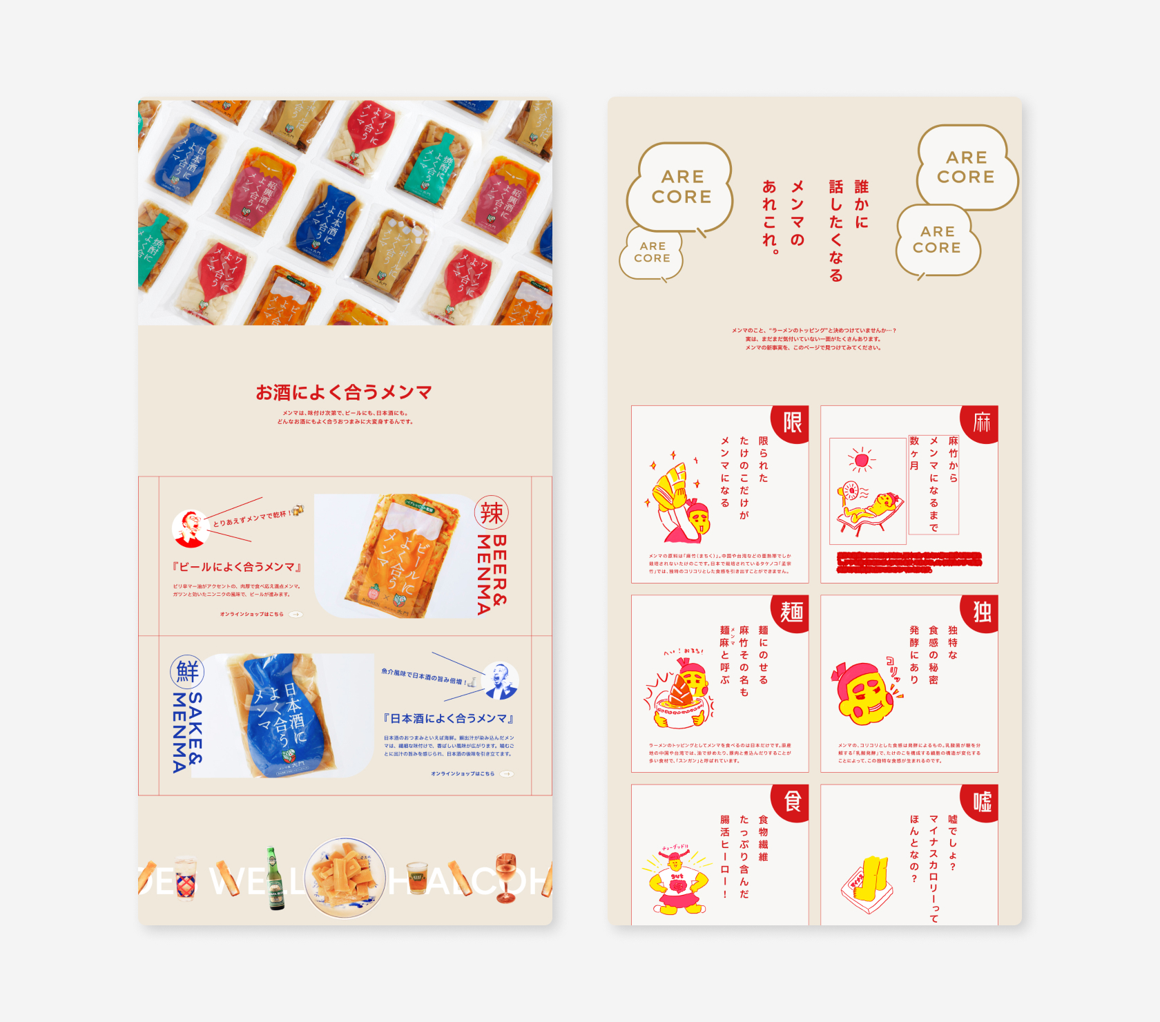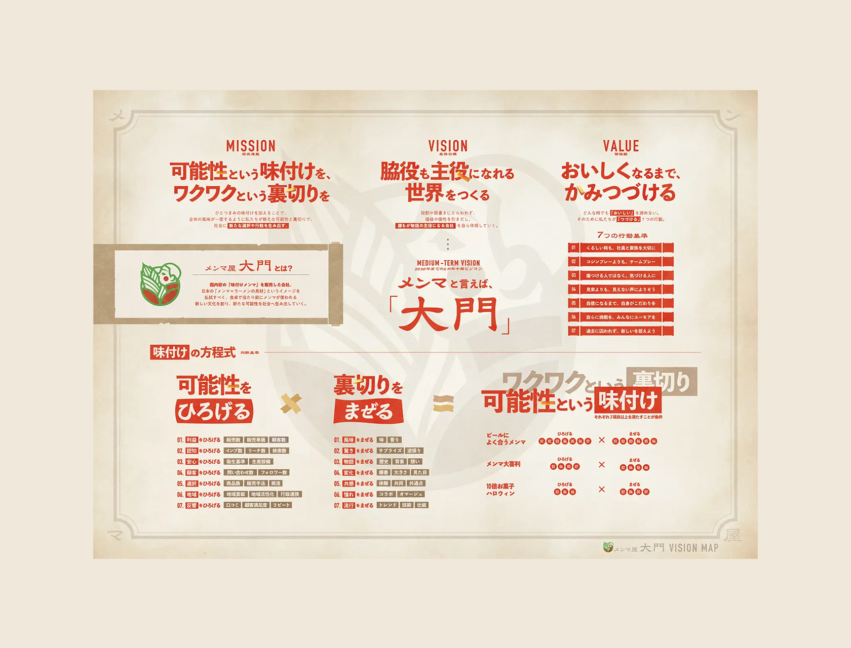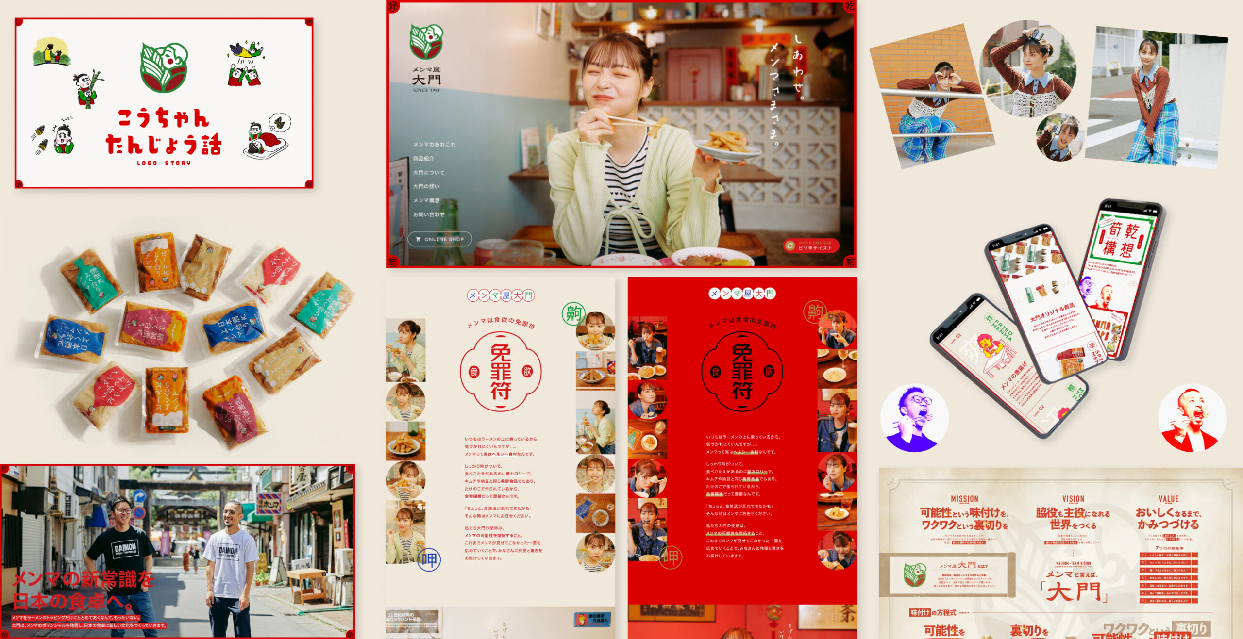 岩手県でメンマの製造・販売を行う株式会社大門様のビジョンマップおよび企業サイト、ECサイトを制作しました。ラーメンのトッピングという従来のイメージから脱却し、食卓での出番を増やしたい。そんな想いを実現するために、「脇役も主役になれる世界をつくる」というビジョンを策定。「食欲の免罪符」というコンセプトを軸にサイトを展開しています。「メンマ構想」として新たな食材との組み合わせを提案したり、メンマの豆知識を紹介したりと、発見のあるコンテンツを設計しました。