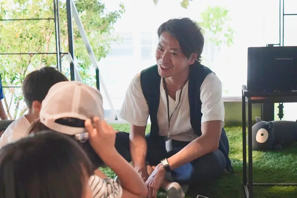 子どもたちは、まず「トゥモローゲートのこども社員」として入社式に参加してもらいました。スクリーンに映し出された西崎社長からのメッセージ動画を見て、まるで本当の社員になったかのような演出に。子どもたちは、“社員の一員”としての誇りを胸に体験へと進みました。