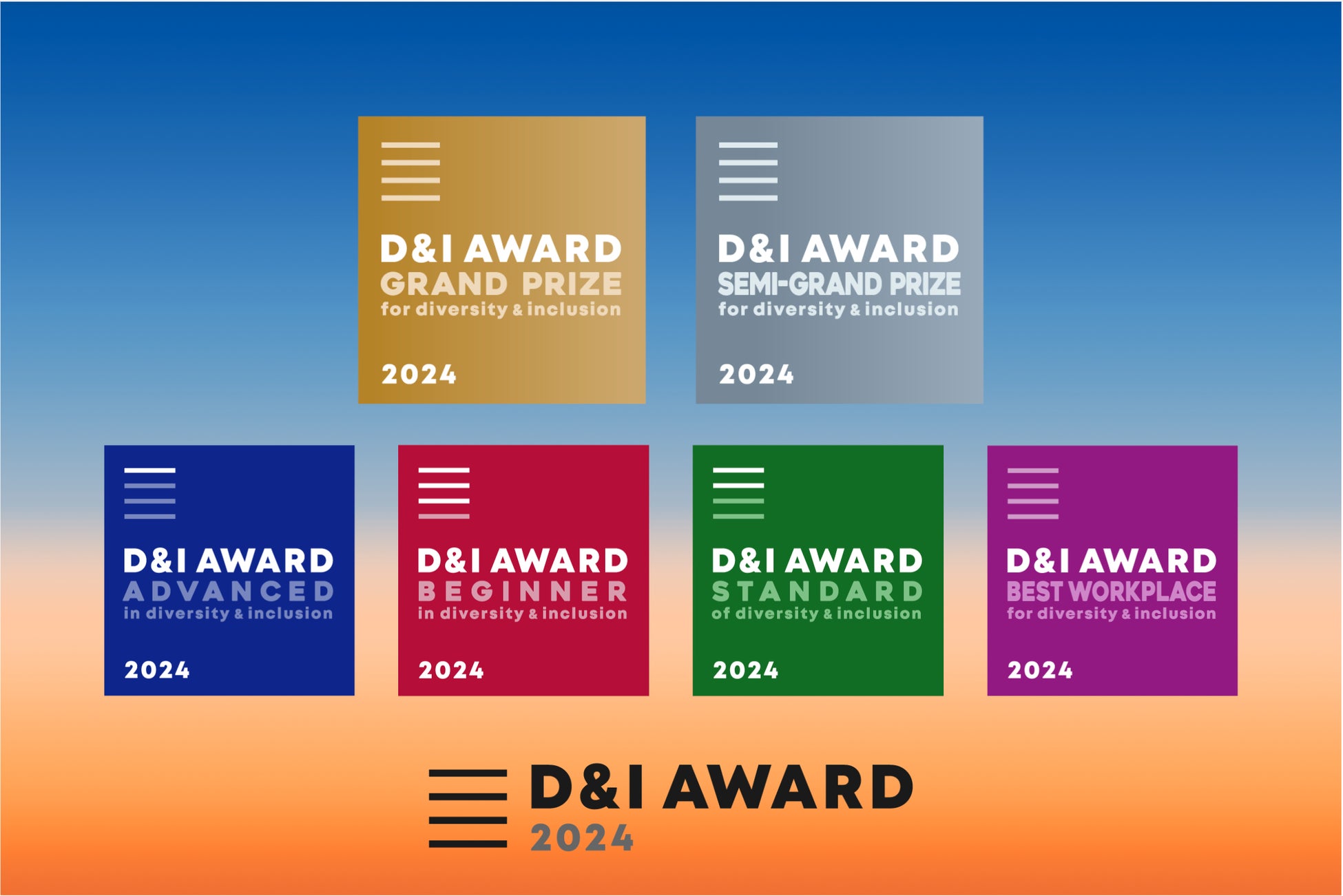 「D&I AWARD 2024」とは、ダイバーシティ&インクルージョン(D&I)に取り組む企業を認定・表彰する日本最大のアワード。 「ジェンダーギャップ」「LGBT+」「障がい」「多文化共生」「育児・介護」の5項目から算出した 「ダイバーシティスコア」をもとに企業のD&Iの取り組みを評価・認定します。
